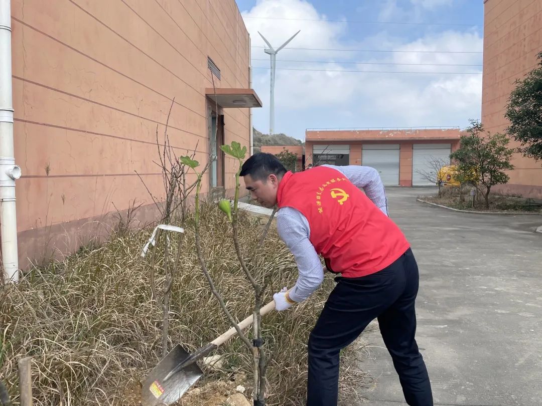 線下,能源公司的黨工團(tuán)志愿者們帶上樹苗、扛起鋤頭,奔赴平陽(yáng)西灣及蒼南霞關(guān)兩個(gè)風(fēng)電場(chǎng),在暖陽(yáng)下,挖坑、栽樹、壓土、澆水...... 各個(gè)環(huán)節(jié)銜接有序,配合默契,認(rèn)真地完成每一道工序,一棵棵新苗就穩(wěn)穩(wěn)地在土里扎下了根,為風(fēng)電場(chǎng)的春天又增添了一抹新綠。